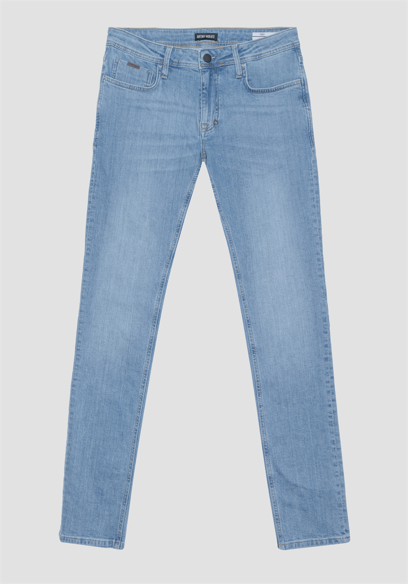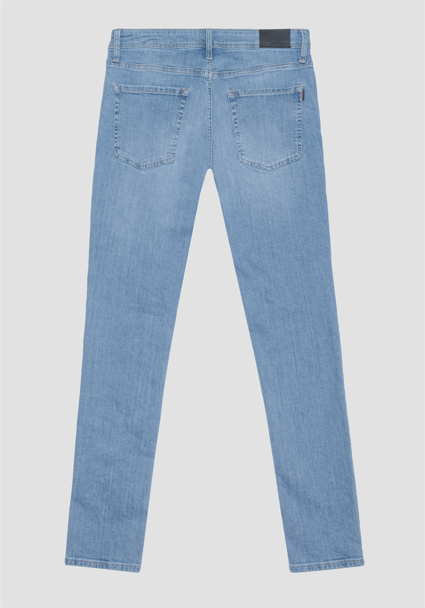 Jeans dalla vestibilità affusolata in confortevole denim. Il cinque tasche è valorizzato da un lavaggio dal tono intenso. Si chiude con la zip e con bottone in vita a vista ed è dotato di una salpa traforata in camoscio sul retrocinta. Un capo dal gusto vintage che diventerà il protagonista di look casual per il tempo libero.