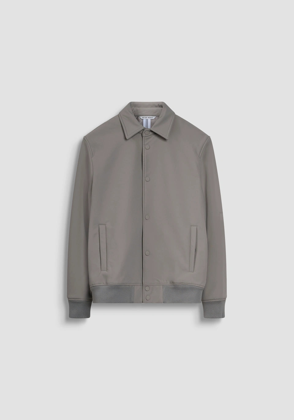 Giacca vestibilità regolare con colletto classico, realizzata in tessuto tecnico bi-stretch dal tocco morbido. Questo tessuto rende il capo confortevole da indossare e perfetto per il periodo autunnale. Inoltre, il capo è dotato di una morbida e leggera eco-imbottitura DuPont Sorona®, che è riconosciuto per le elevate prestazioni tecniche in termini di elasticità, mantenimento delle forme e soprattutto per l'elevato comfort termico. Una linea classica che riprende il modello college e lo rende elegante e lineare, perfetto da indossare in ogni occasione. Chiusura con bottoni a pressione, due tasche a filetto, polsini e fondo in maglia elastica. Sul retro, piccola linguetta con applicata una placchetta metallica logata.